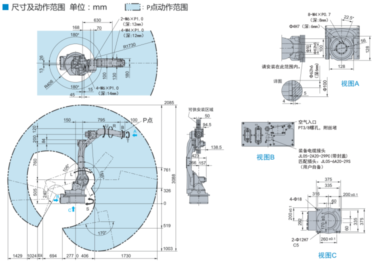 尺寸及動作范圍